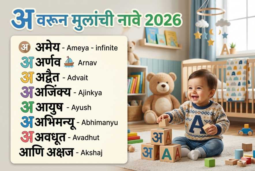इथे “A (अ/आ)” पासून सुरू होणारी 101 मराठी मुलांची नावे (unique + modern mix) दिली आहेत 👇